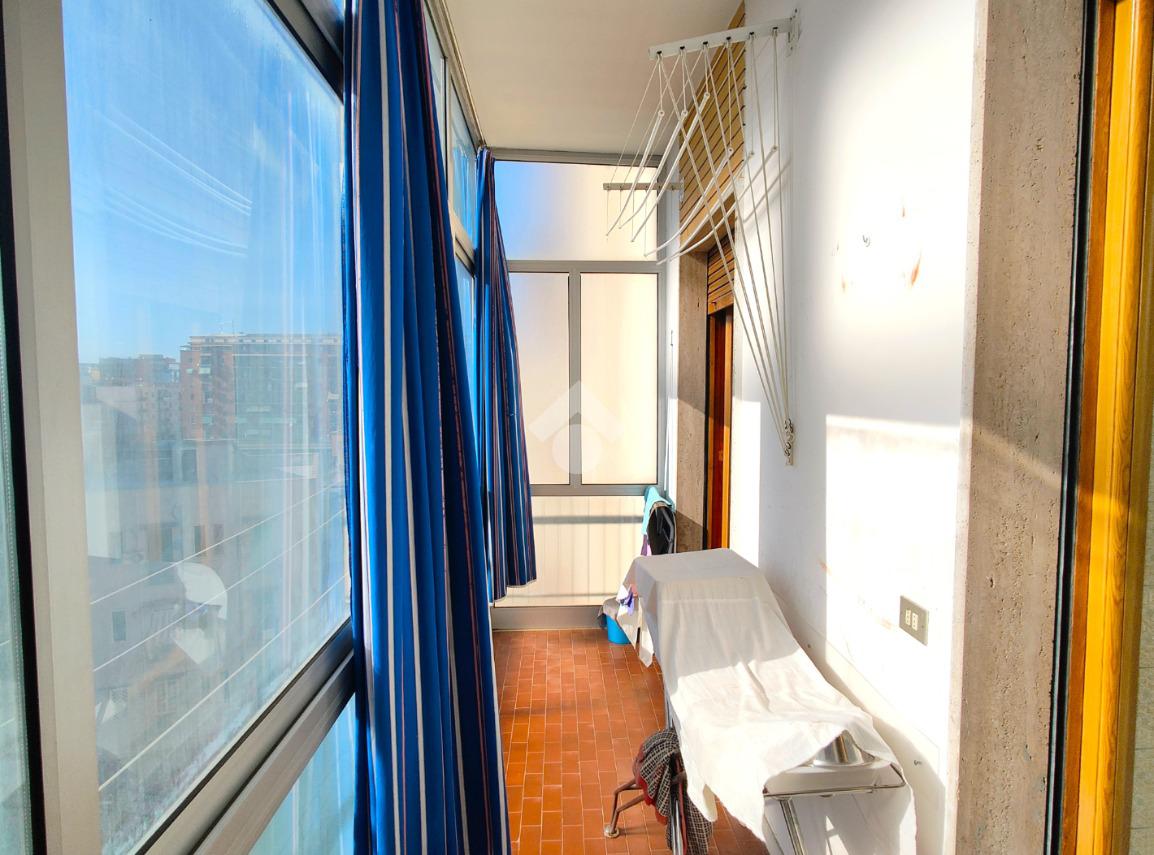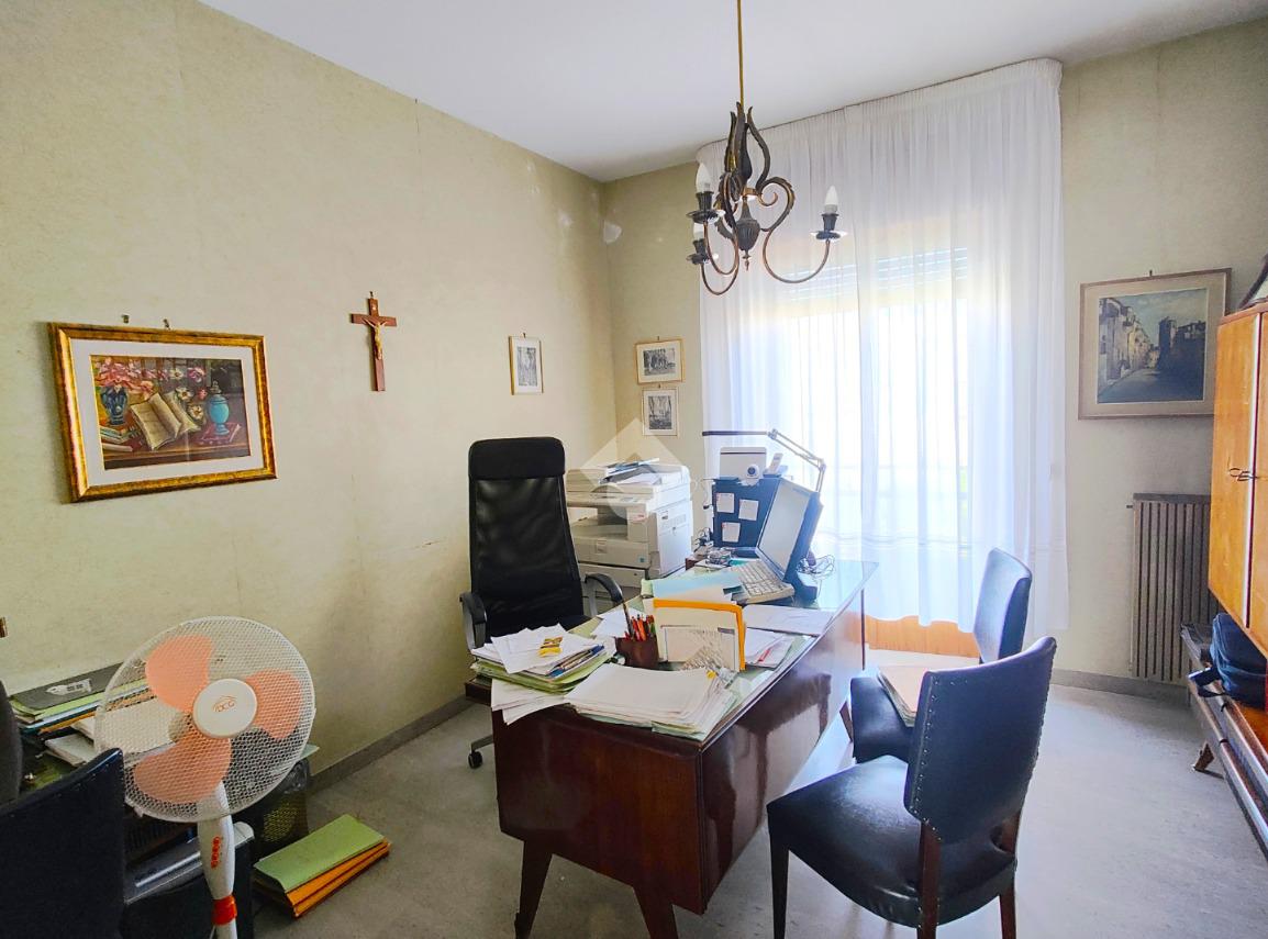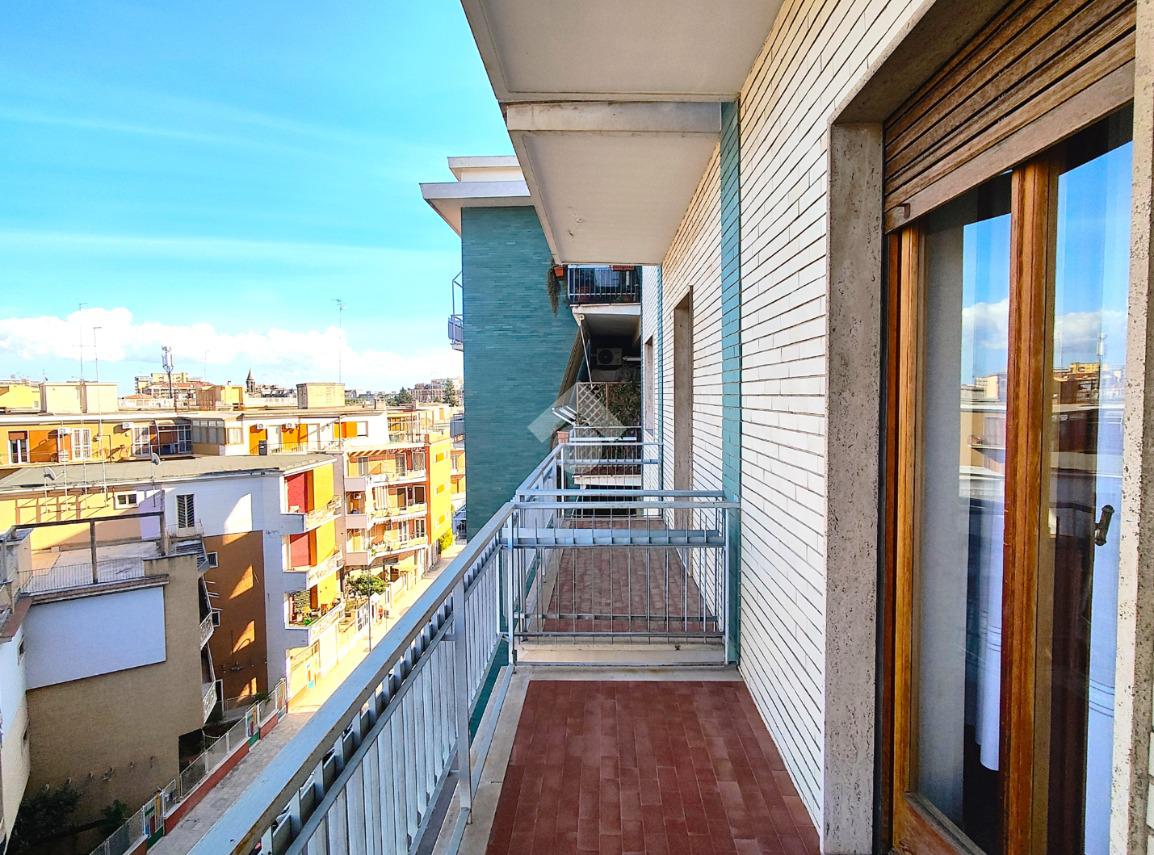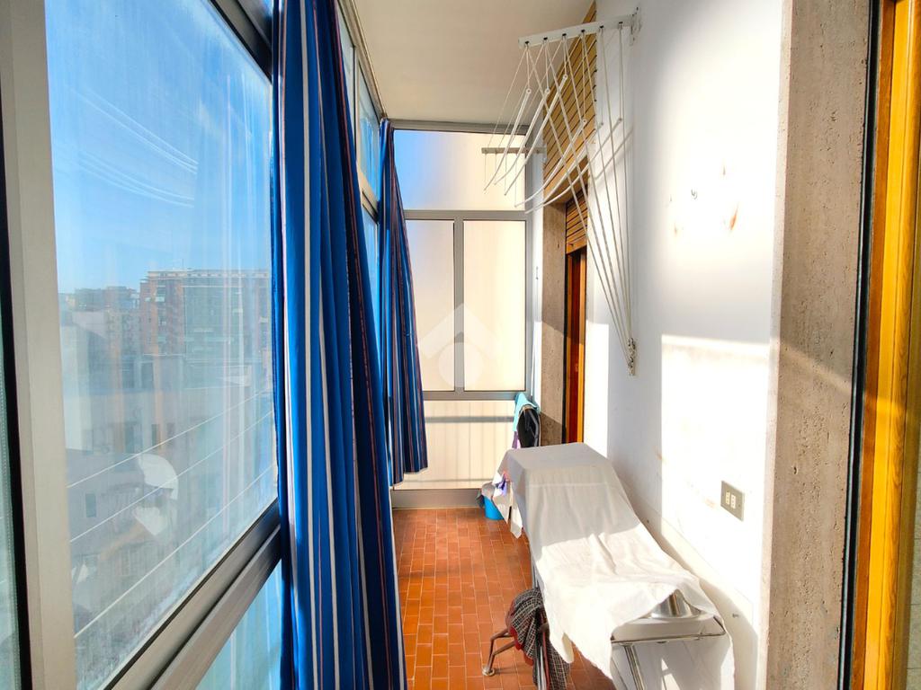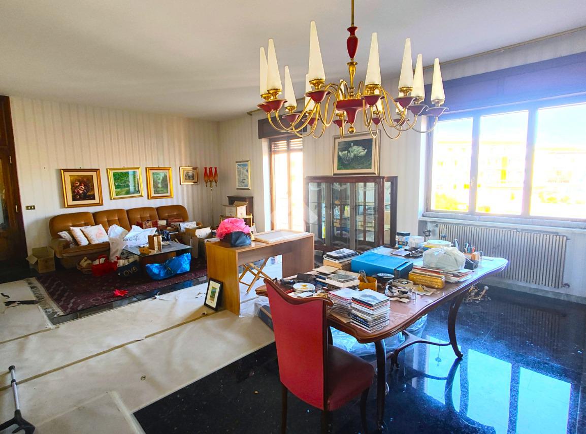 L'immobile, di ampia metratura, è in buono stato generale ed è composto così come segue : ingresso, sala da pranzo, cucina abitabile, queste ultime entrambe con accesso a balcone verandato, doppio soggiorno divisibile in due camere, con accesso a balcone esclusivo, cameretta, studio con balcone esclusivo, camera da letto, bagno e ripostiglio.