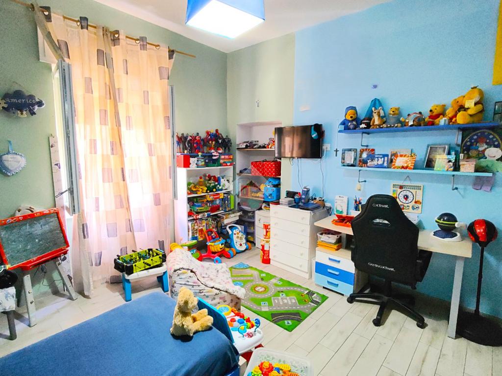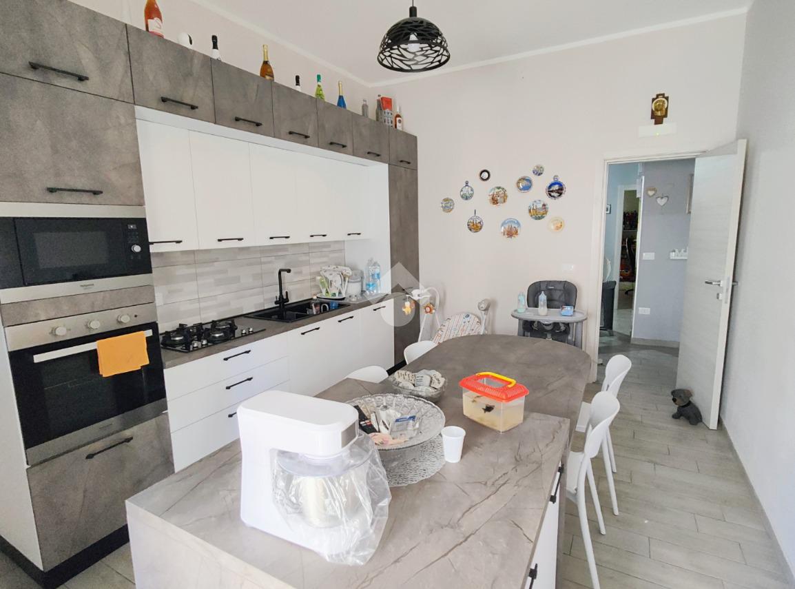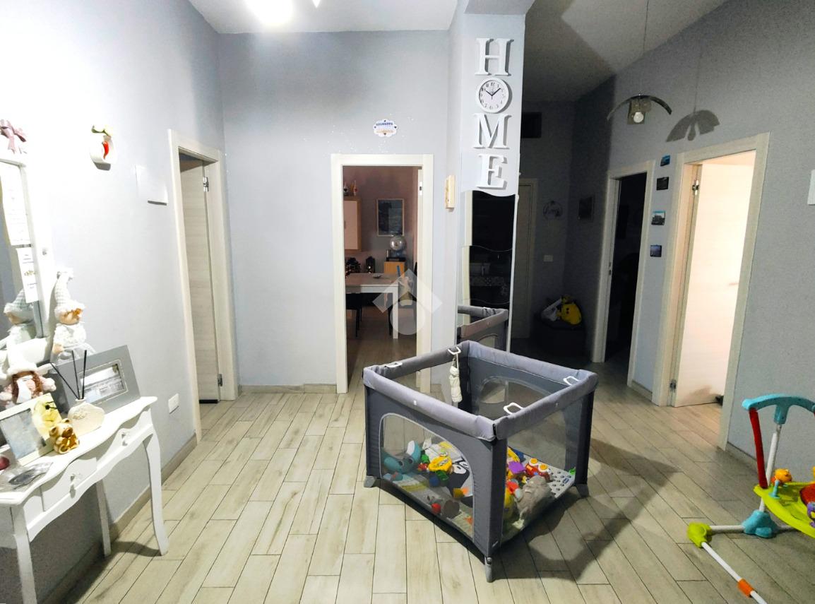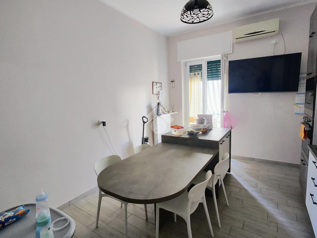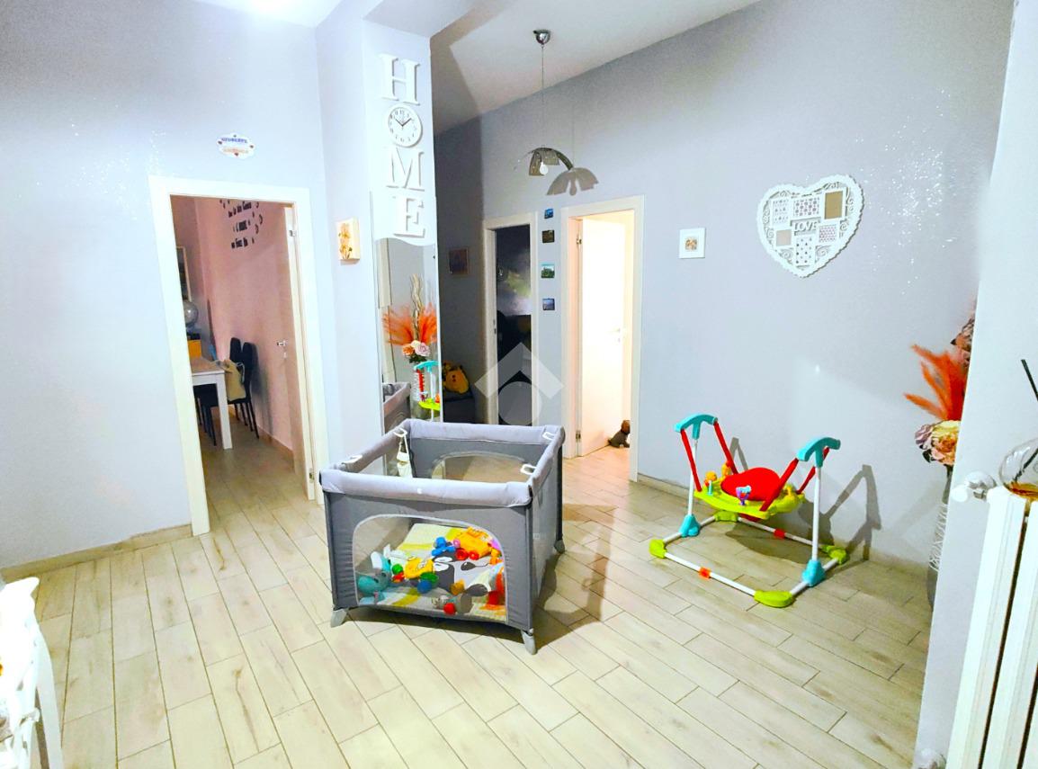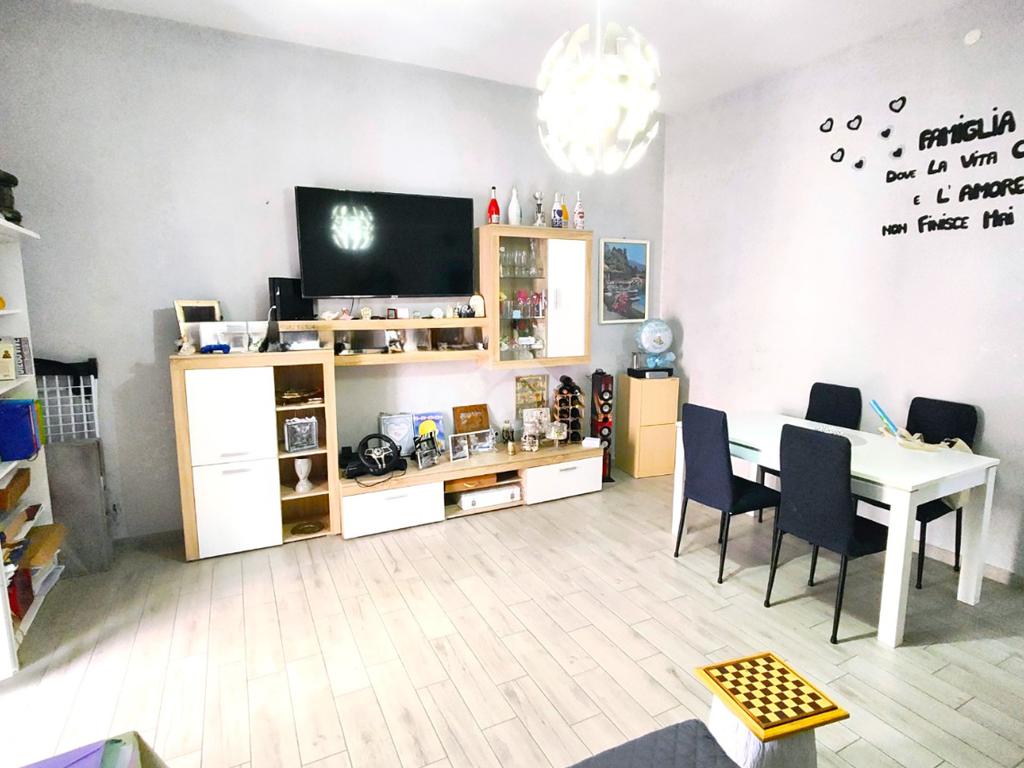 Si compone di ampio ingresso, cucina abitabile con accesso a pertinenza esclusiva prospiciente su corte interna, ampio soggiorno, anch'esso con pertinenza esclusiva prospiciente su strada principale, cameretta, camera da letto, doppi servizi e ripostiglio.