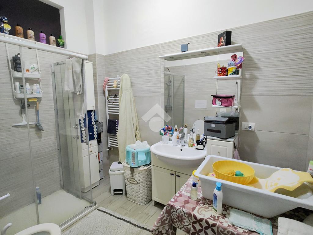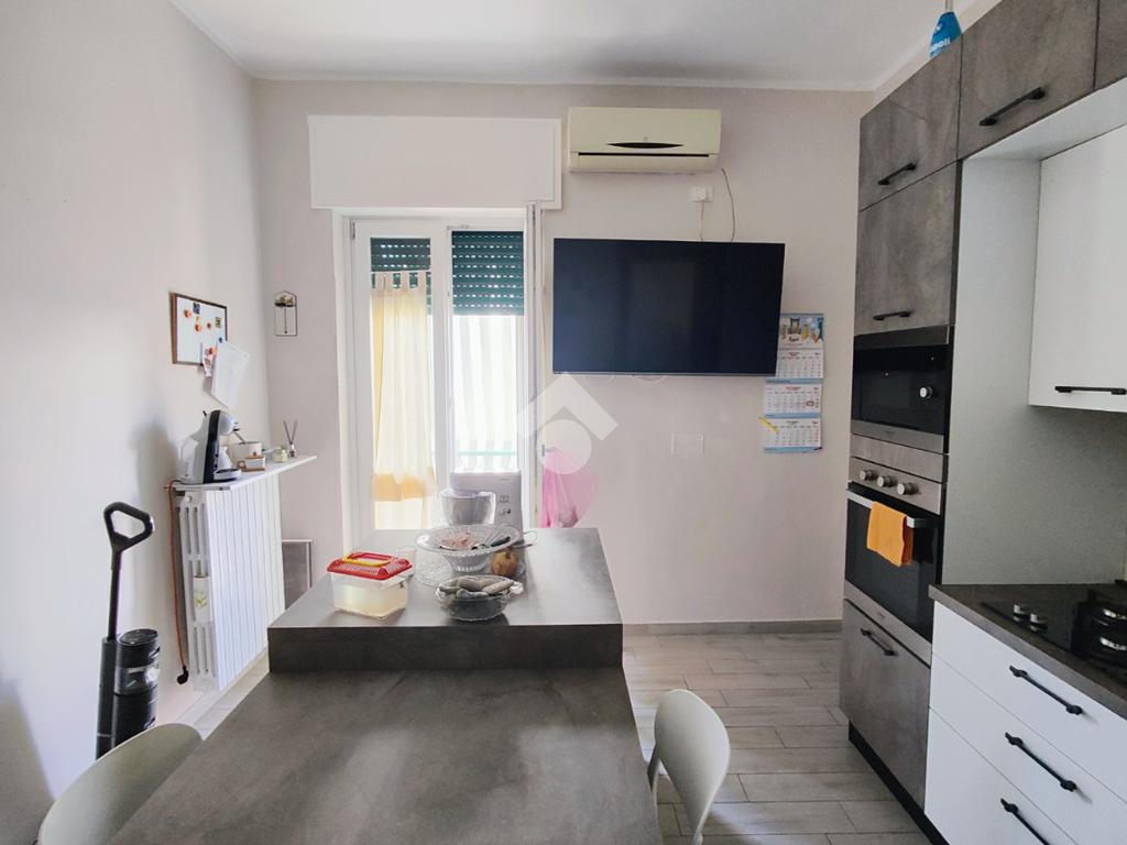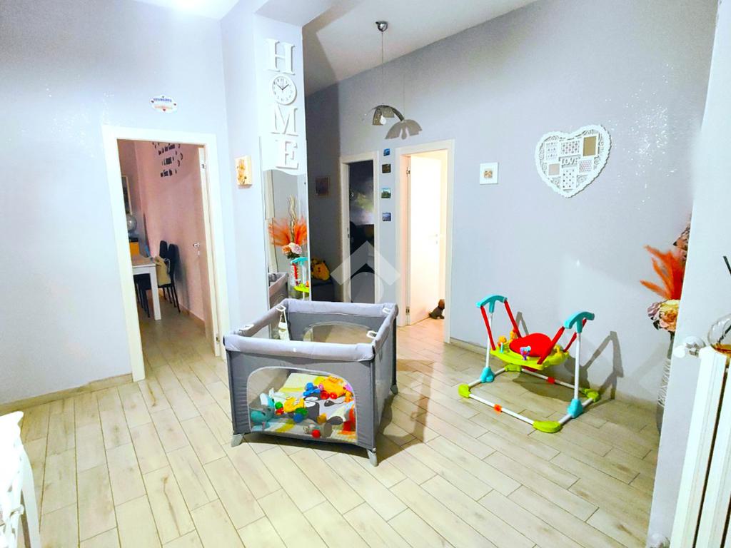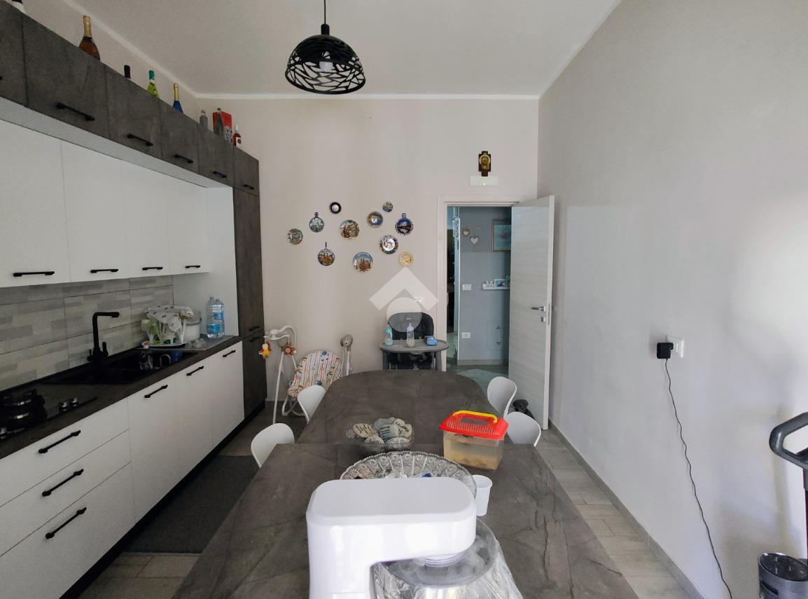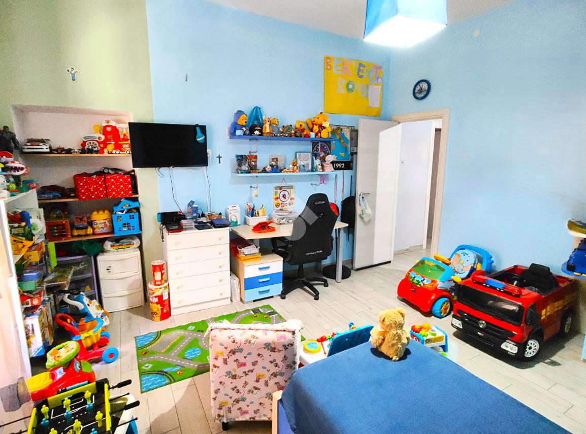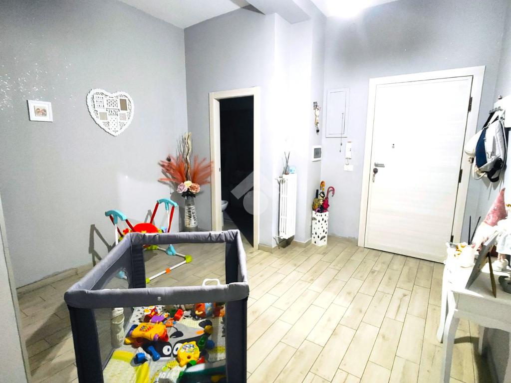 Si compone di ampio ingresso, cucina abitabile con accesso a pertinenza esclusiva prospiciente su corte interna, ampio soggiorno, anch'esso con pertinenza esclusiva prospiciente su strada principale, cameretta, camera da letto, doppi servizi e ripostiglio.