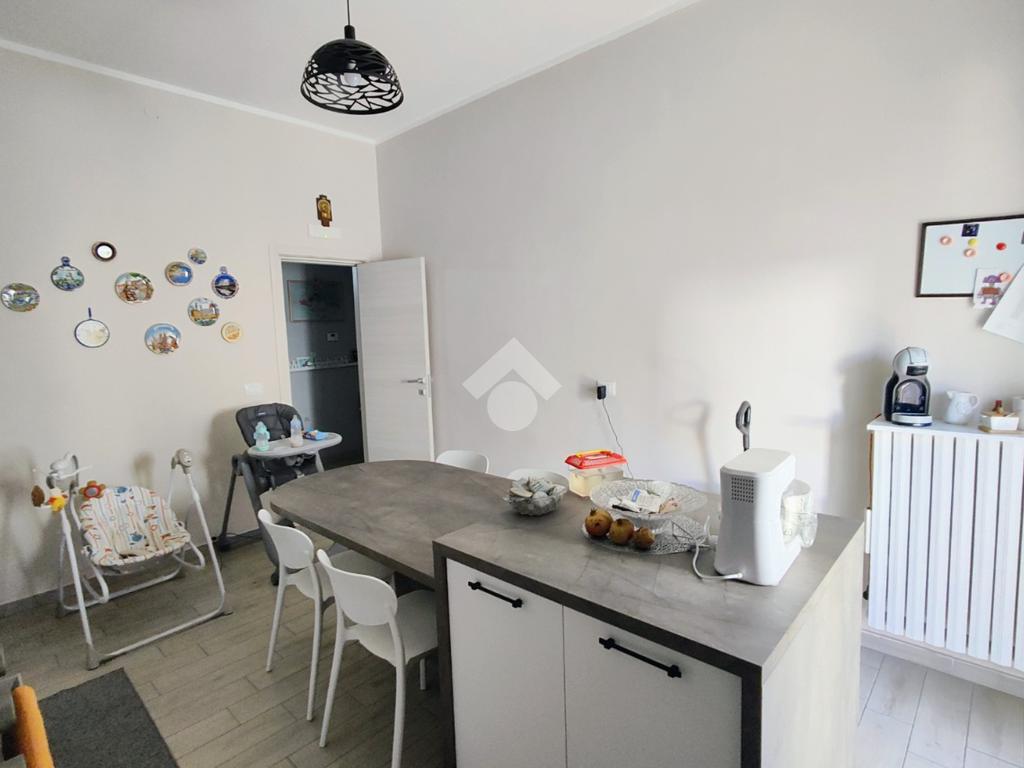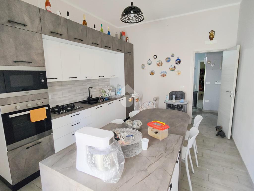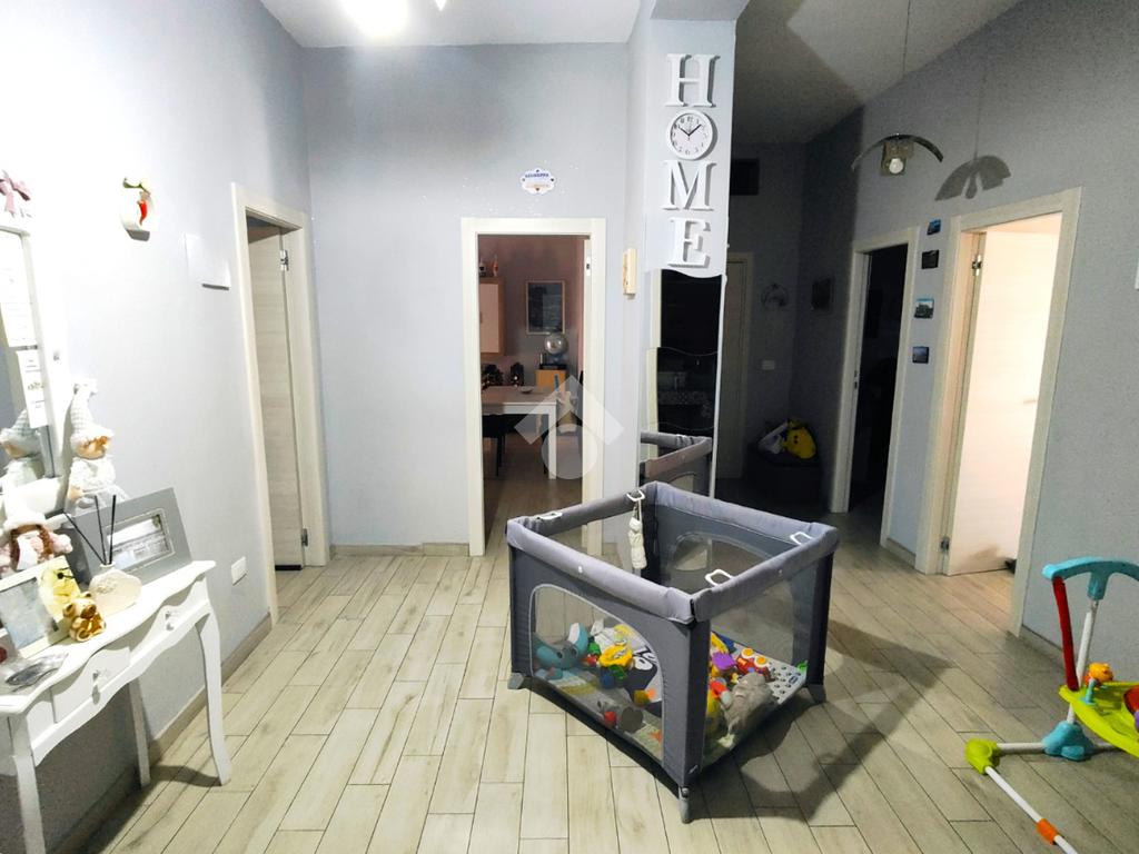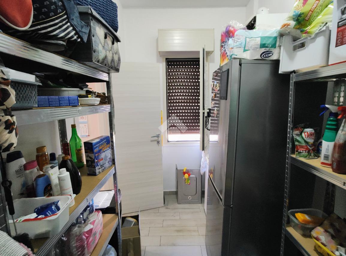 E' dotato di pavimentazione unica in gres porcellanato effetto legno di rovere sbiancato, porte interne in legno, infissi in PVC con doppio vetro a taglio termico su tutti i punti luce completi di zanzariere, impianti completamente revisionati e porta d'ingresso blindata.