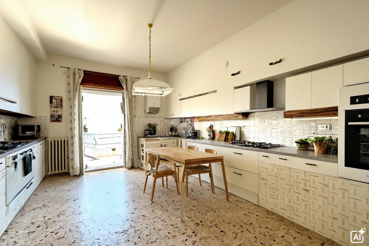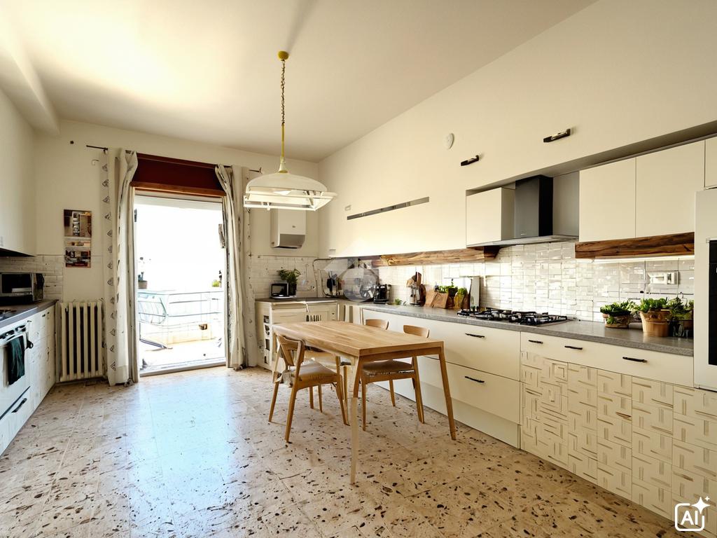 La doppia esposizione, rende ampia luminosità ed è arricchita dalla presenza di un balocone condiviso fra il soggiorno e la cucina.