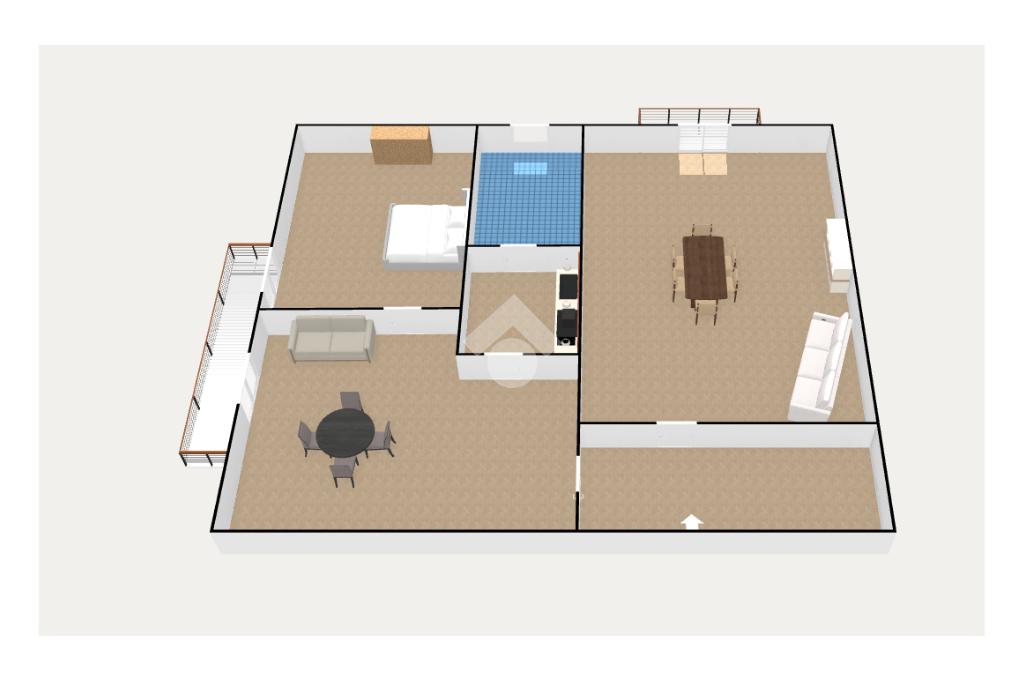 La soluzione si presenta in discreto stato generale ed è composta così come segue: ingresso, soggiorno a vista con angolo cottura, disimpegno, cameretta, camera da letto e bagno.