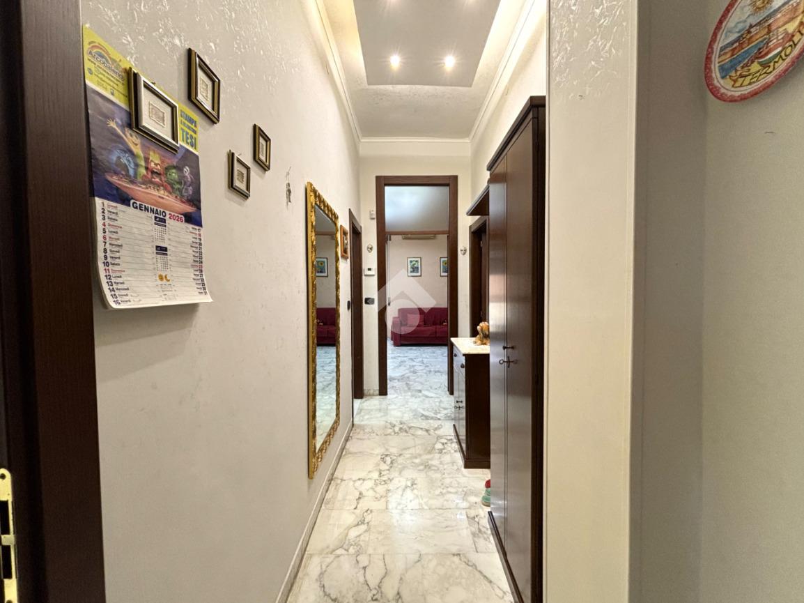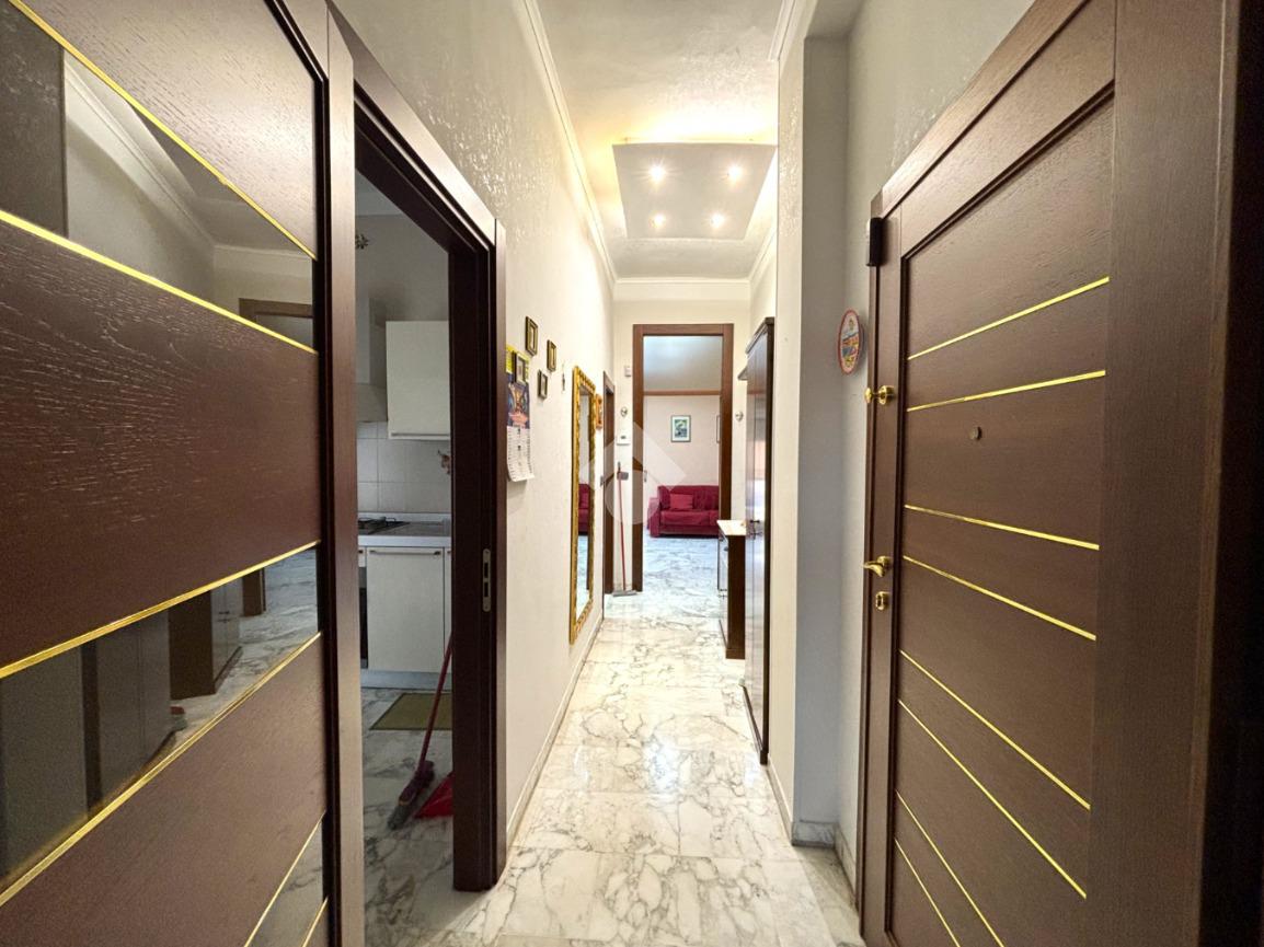 Presenta pavimentazione unica in marmo arabescato, infissi in pvc doppio vetro a taglio termico su tutti i punti luce compelti di zanzariere, porte interne in legno Garofoli, impianti completamente revisionati, impianto d’allarme ‘Sectek’ volumetrico e perimetrale e porta d’ingresso blindata D’Addario.