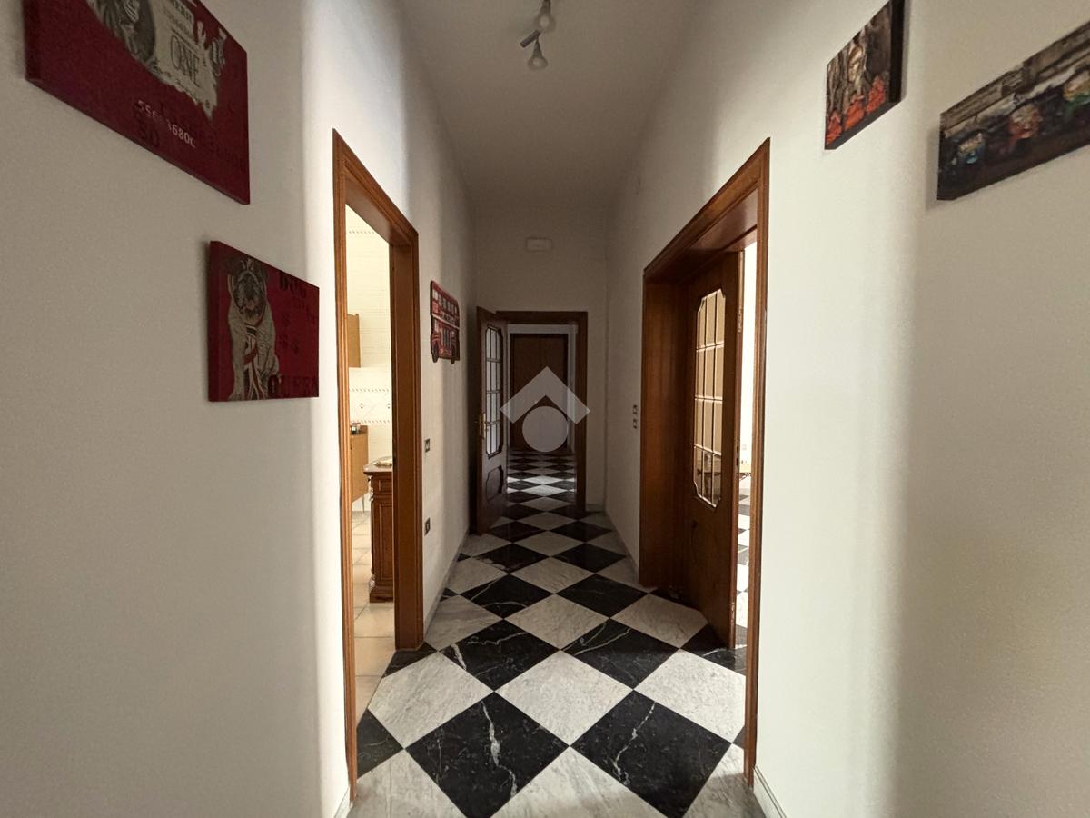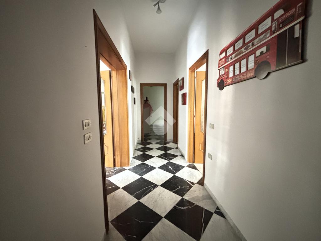 Dispone di pavimentazione mista: in marmo di Carrara ed in ceramica, infissi in anticorodal completi di zanzariere e persiane su tutti i punti luce, porte interne in legno stile inglese, impianti da revisionare e porta d'ingresso blindata.