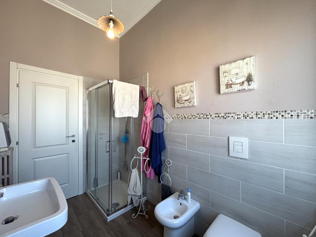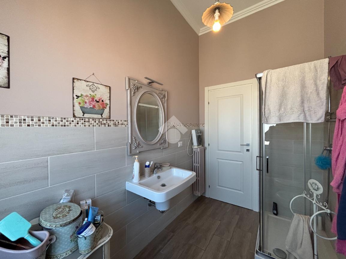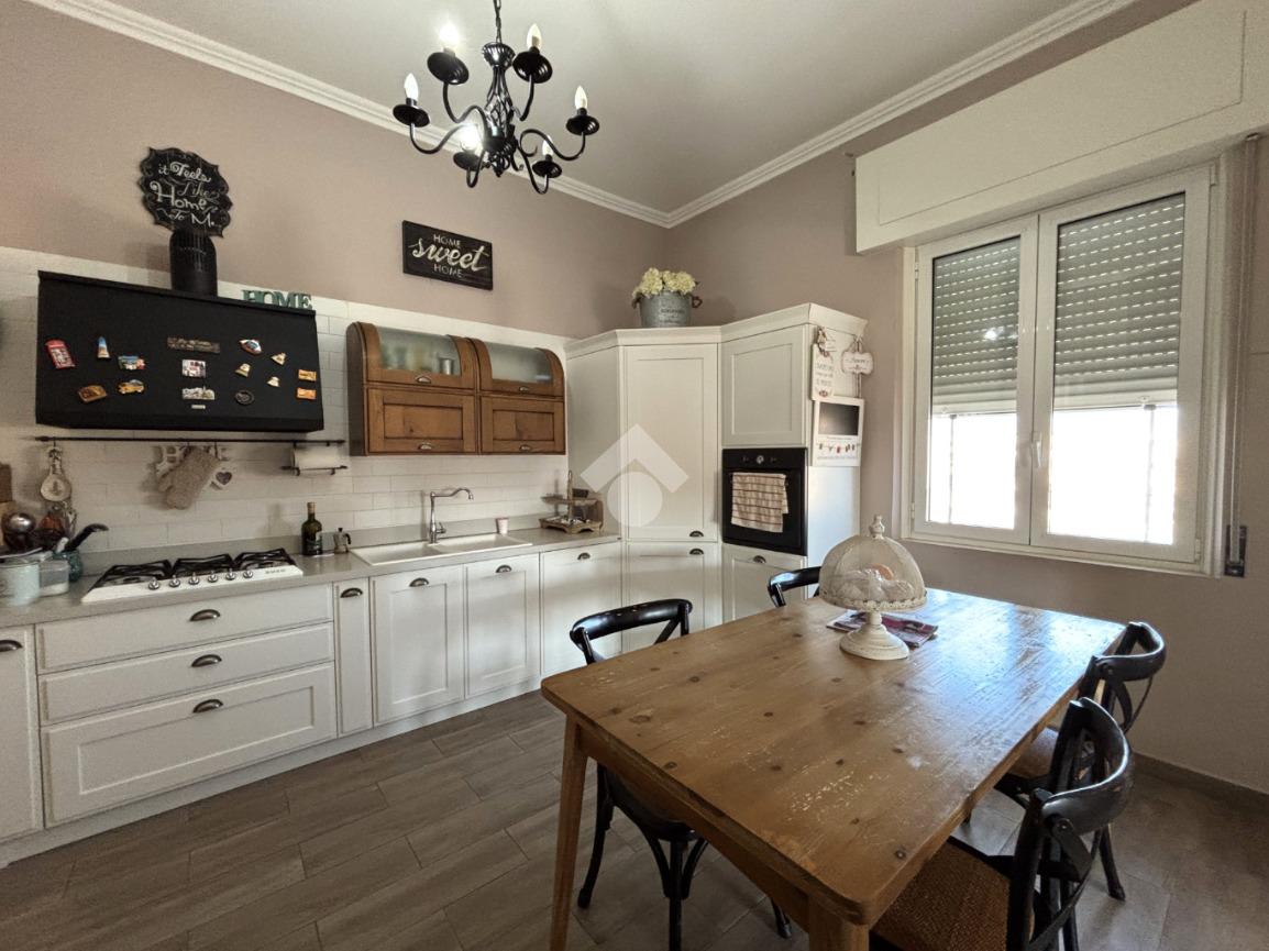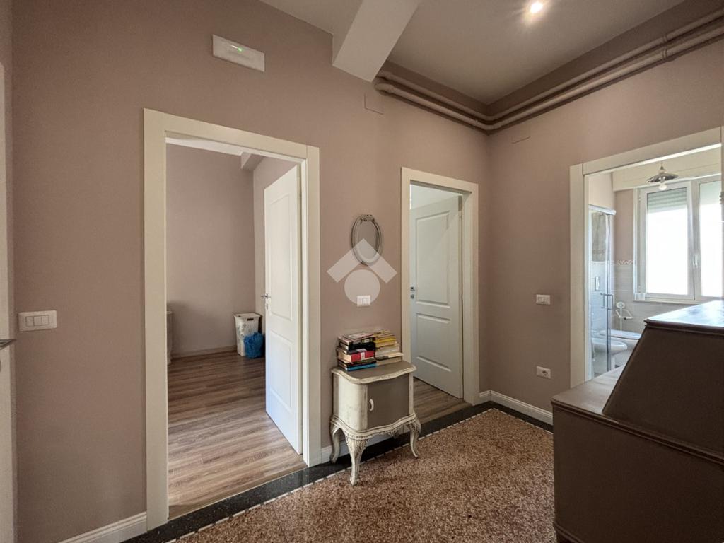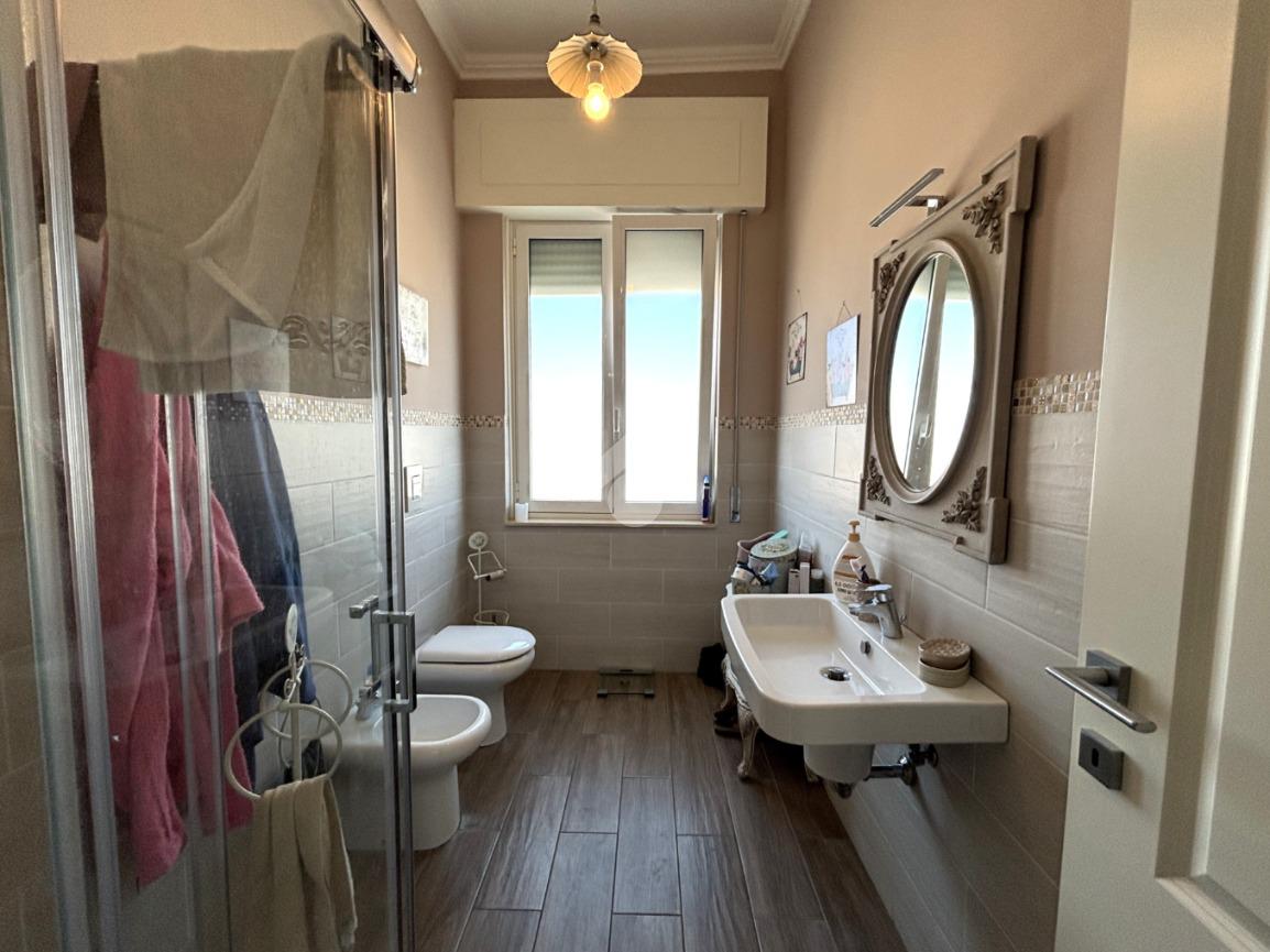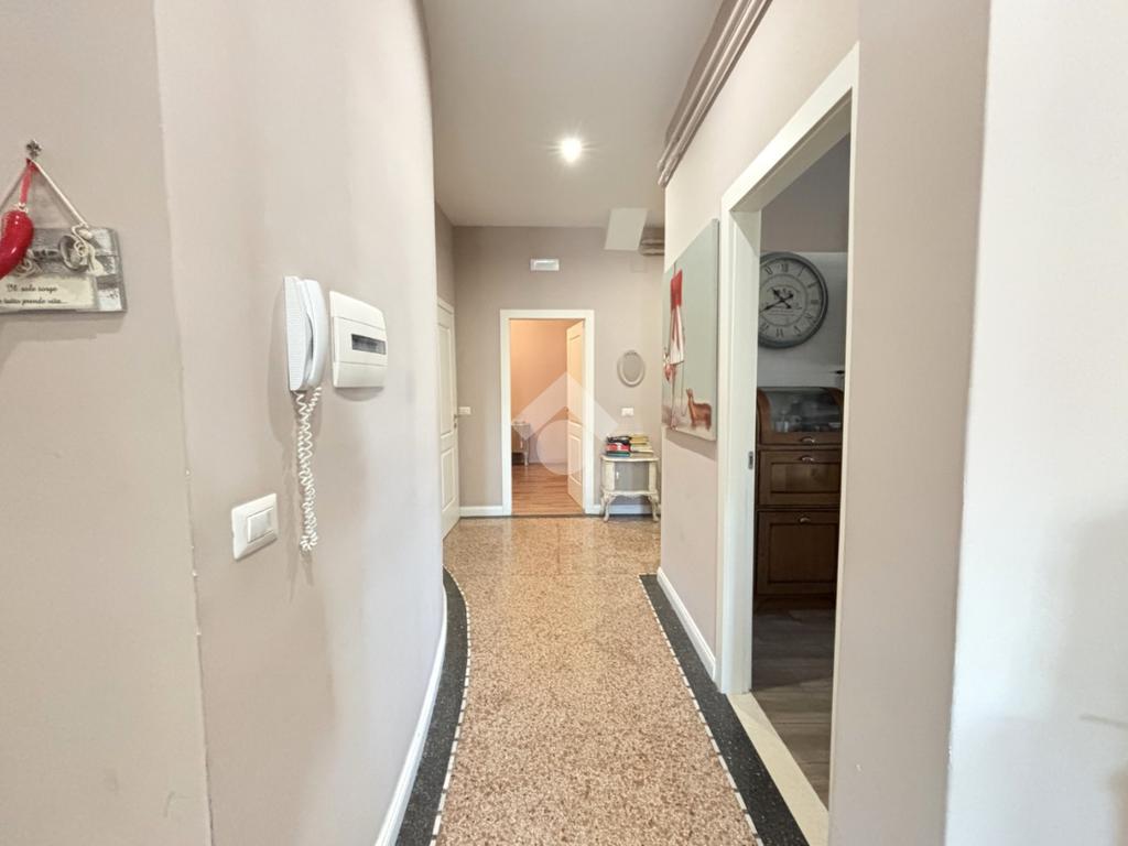 Presenta pavimentazione mista: marmo mosaico, gres porcellanato effetto legno e parquet laminato, infissi in pvc doppio vetro a taglio termico su tutti i punti luce, porte interne in legno, impianti completamente revisionati e porta d'ingresso blindata.